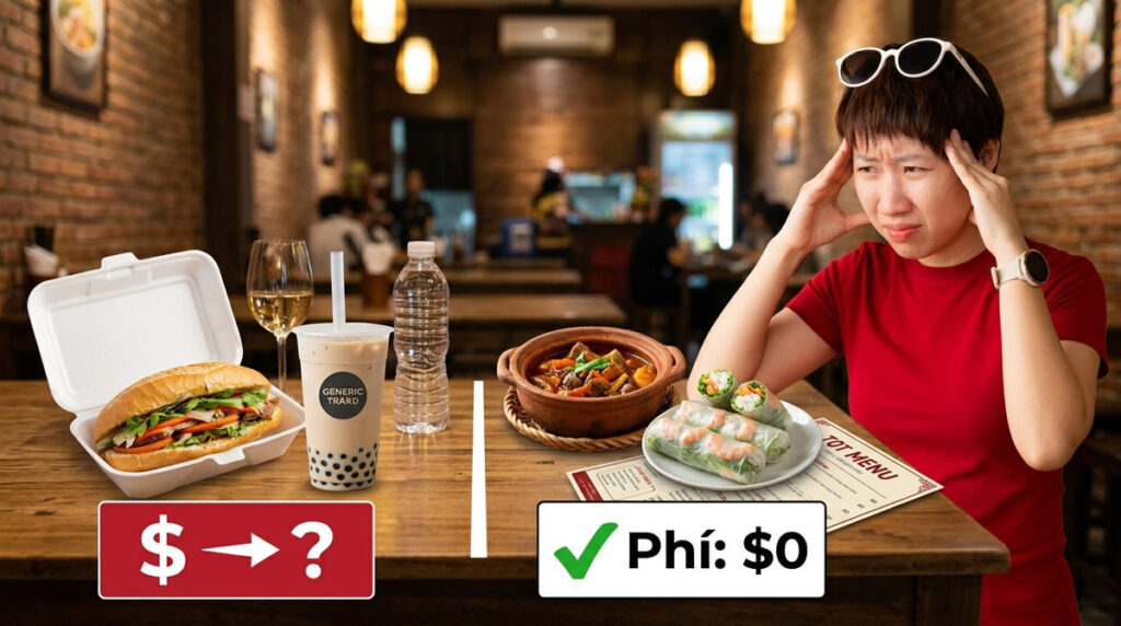 Ngược lại, sai lầm chết người của nhiều quán là âm thầm cộng thêm tiền phụ thu vào hóa đơn thanh toán mà không hề báo trước. Khi khách hàng thắc mắc, nhân viên mới bắt đầu giải thích luật lệ của quán. Hành động này vi phạm nghiêm trọng quyền được thông tin của người tiêu dùng. Bạn đang tự đẩy mình vào thế yếu về mặt pháp lý.