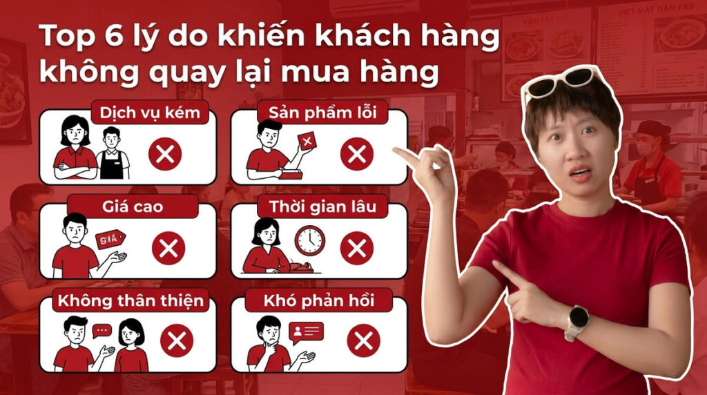 Bạn có biết chi phí để thu hút một khách hàng mới cao gấp 5 lần so với việc giữ chân một khách hàng hiện tại? Thực tế, nhiều chủ quán ăn và doanh nghiệp đang đau đầu đối mặt với một sự thật phũ phàng. Khách hàng chỉ đến mua sản phẩm một lần duy nhất rồi “một đi không trở lại”. Tình trạng này làm tăng tỷ lệ khách hàng rời bỏ và gây thất thoát doanh thu vô cùng nghiêm trọng. Chắc chắn, việc tìm ra những lý do khiến khách hàng không quay lại là ưu tiên sống còn nếu bạn muốn tồn tại. Bài viết này sẽ bóc tách chi tiết những nguyên nhân cốt lõi khiến bạn đánh mất “thượng đế” của mình. Đồng thời, tôi sẽ cung cấp các chiến lược thực chiến giúp bạn cải thiện trải nghiệm và biến họ thành những người ủng hộ trung thành.