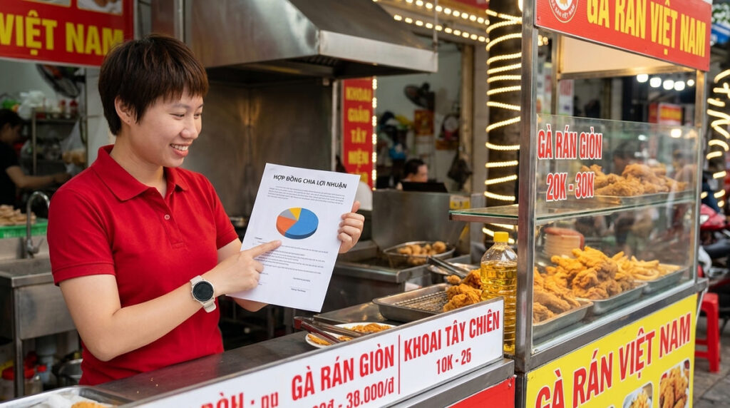 Theo kinh nghiệm thực chiến của Thảo, đây là mô hình bền vững nhất trong ngành F&B. Người bỏ công sẽ nhận một mức lương cơ bản hàng tháng. Mức lương này có thể thấp hơn thị trường khoảng 30-40% để giảm áp lực dòng tiền. Bù lại, họ sẽ được chia thêm phần trăm lợi nhuận, thường từ 10% đến 20%.