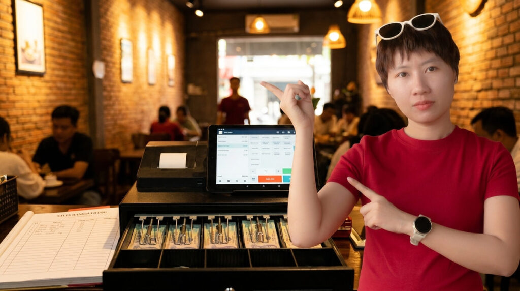 Hơn 60% các vụ thất thoát tiền mặt và hàng hóa tại cửa hàng xảy ra vào chính những thời điểm giao nhận ca lộn xộn. Thực tế, tôi đã từng chứng kiến cảnh hai bạn nhân viên đùn đẩy trách nhiệm cho nhau chỉ vì thiếu hụt 200 nghìn đồng trong két. Quản lý thì đau đầu vì không biết lỗi thực sự thuộc về ca sáng hay ca chiều. Trong khi đó, việc đếm tiền và kiểm kho thủ công lại ngốn quá nhiều thời gian quý báu của cả hai ca làm việc. Vì vậy, việc thiết lập một quy trình bàn giao ca bán hàng chuẩn xác là điều sống còn để bảo vệ doanh thu. Ngay bây giờ, tôi sẽ chia sẻ cho bạn từng bước chi tiết, kèm theo giải pháp triệt tiêu hoàn toàn rủi ro thất thoát.