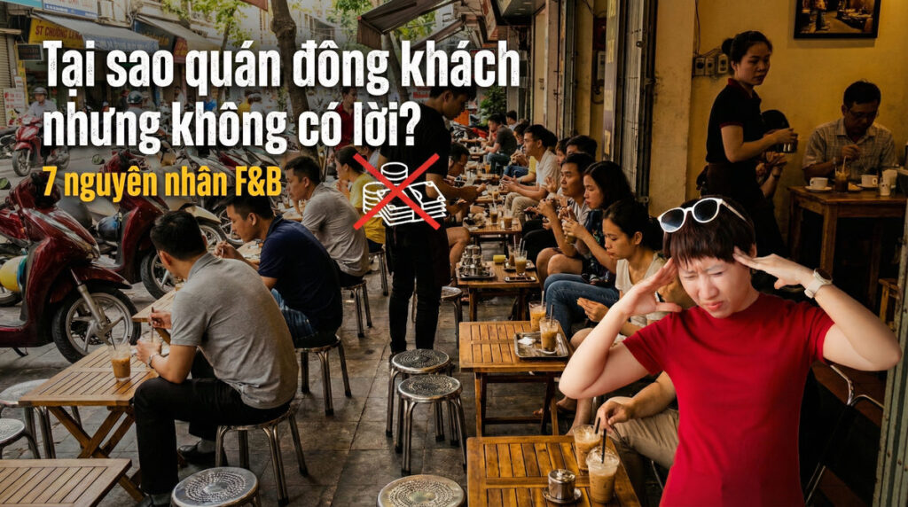 Cảm giác đó giống như bạn đang chèo một con thuyền đầy khách nhưng dưới đáy lại có những lỗ thủng li ti mà bạn không hề hay biết. Nước cứ thế tràn vào, và dù bạn có chèo nhanh đến đâu, con thuyền vẫn cứ nặng nề và có nguy cơ chìm nghỉm. Với kinh nghiệm vận hành chuỗi nhượng quyền gần 300 chi nhánh, tôi hiểu rằng “đông khách” chỉ là điều kiện cần, còn “có lời” mới là điều kiện đủ để một mô hình F&B tồn tại bền vững. Hãy cùng tôi bóc tách 7 nguyên nhân cốt lõi khiến lợi nhuận của bạn “bốc hơi” dù quán vẫn đông nghịt người.