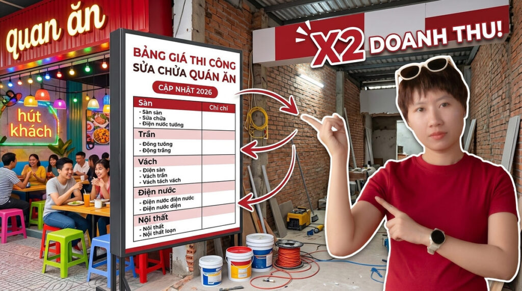 4. Chi phí sửa chữa quán ăn trọn gói là bao nhiêu? Bảng giá 2026